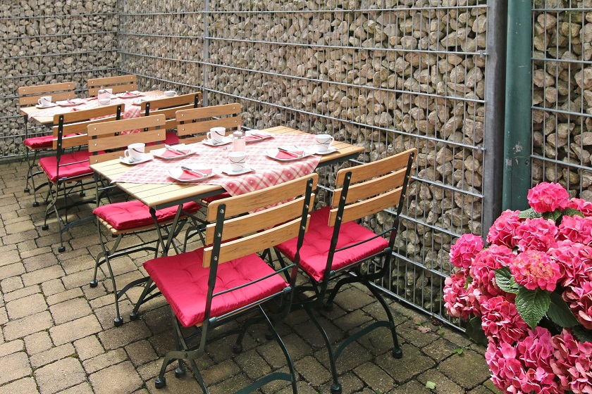 Ihr Frühstück genießen Sie in unserem freundlichen Frühstücksraum mit kleiner Sommerterrasse.